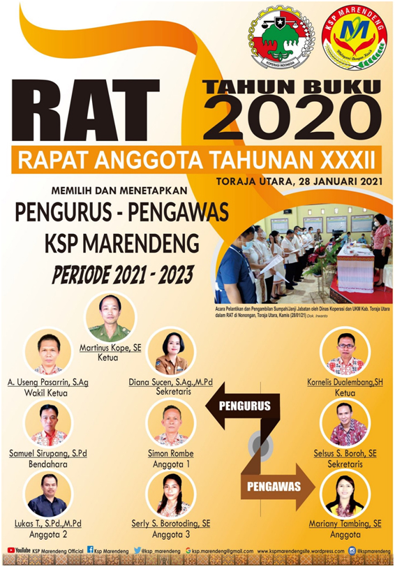 Selamat Malam, Salam Sehat dan Salam Marendeng.Proficiat kepada Pengurus - Pengawas KSP Marendeng Periode 2021-2023